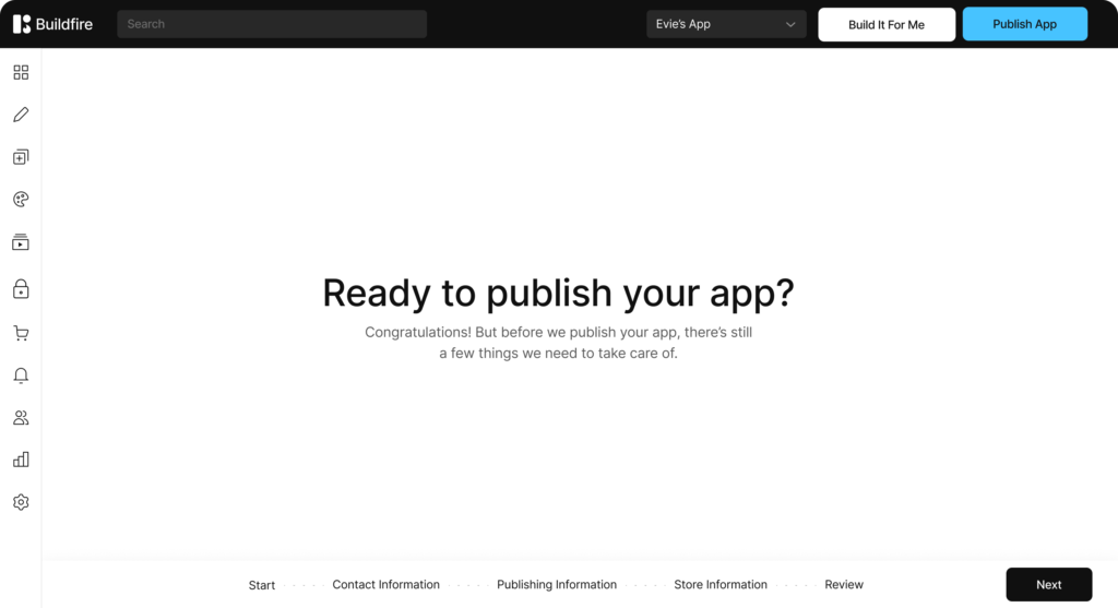Ready to start the 8-week journey from Shopify store to published app? Book a discovery call to discuss your timeline and goals, or start your free trial through your Shopify account. See how Buildfire’s platform and white-glove publishing makes it easy to build and launch your own native mobile app for your store the right way.